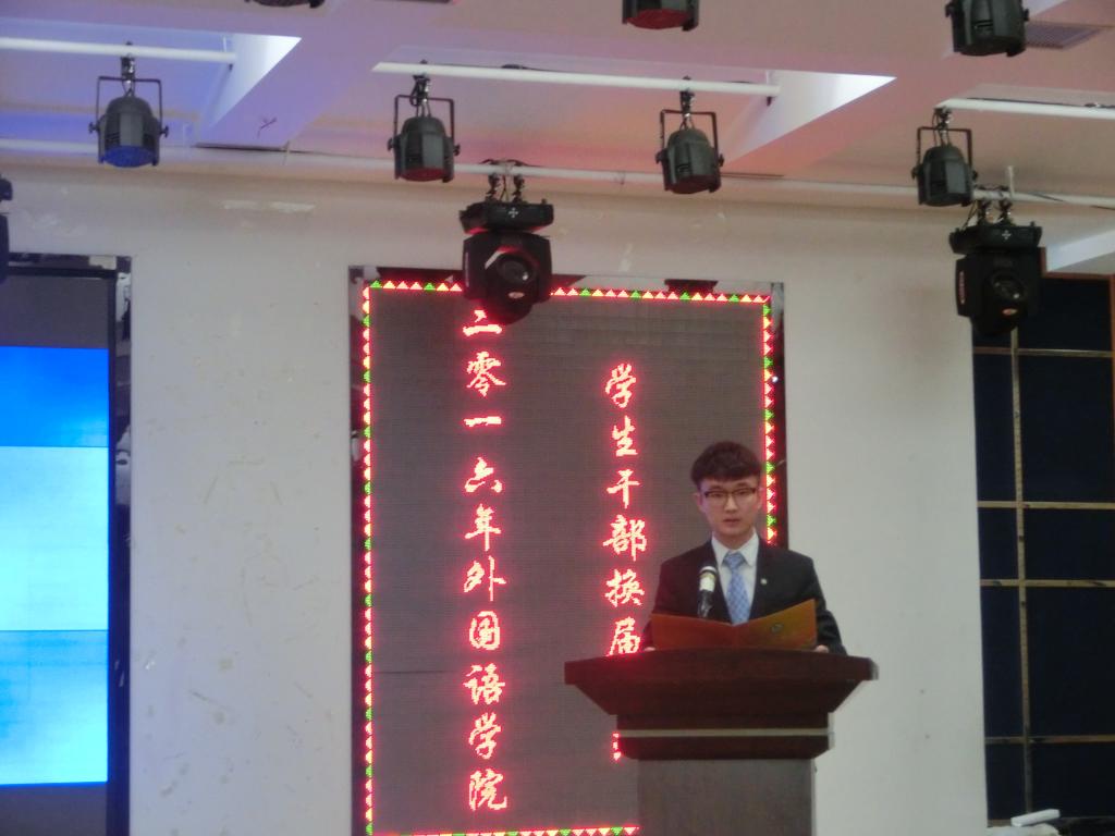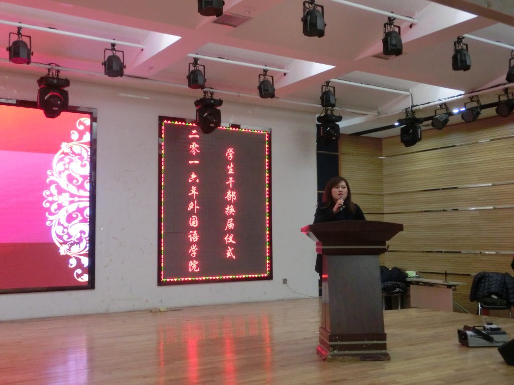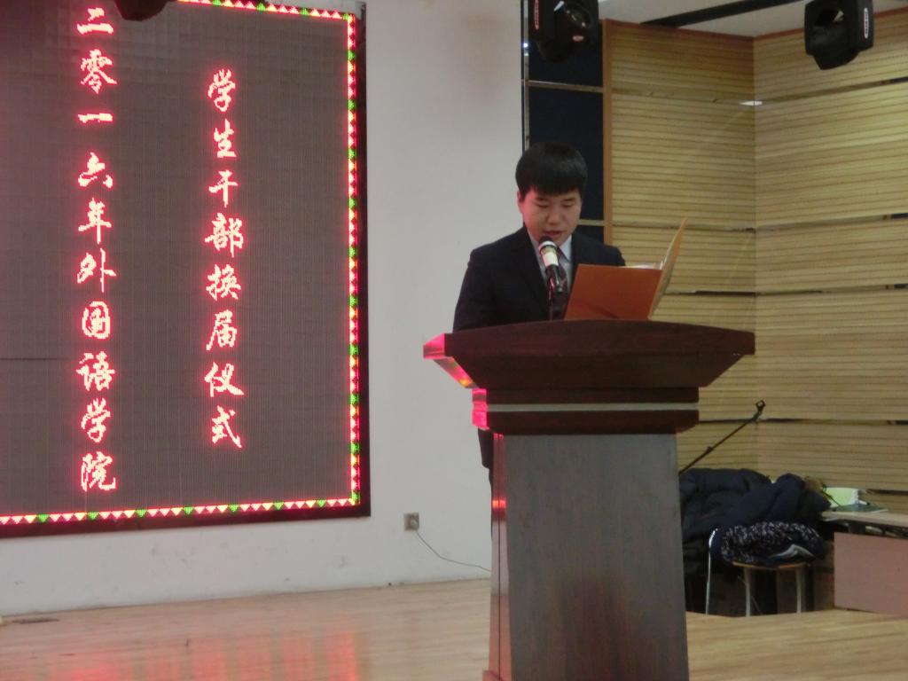 2016年11月5日上午9时,w88优德2016年员工干部换届仪式在二食堂三楼小剧场顺利举行。学院员工工作办公室裴香花主任、团委金春宪书记以及各专业辅导员出席了本次大会。本次换届仪式由学院十三届员工会主席朴泰禹主持。