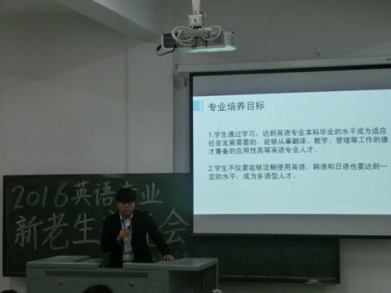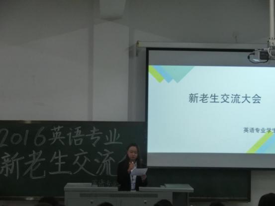 2016年11月7日,w88优德英语专业在西部教学楼207教室举办了新老生交流会。外国语学校团委书记兼英语专业辅导员金春宪老师出席了本次交流会。2013级郭玉娇同学和卜佳乐同学、英语专业员工会全体成员和2016级全体同学参加了此次交流会。此次交流会由员工会秘书郑舒予同学主持。