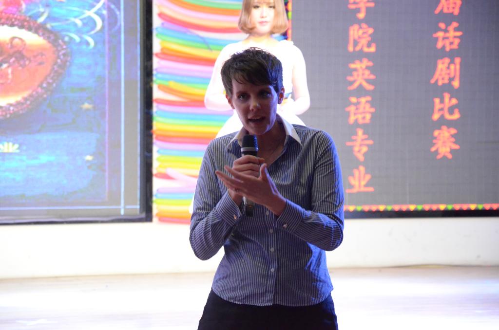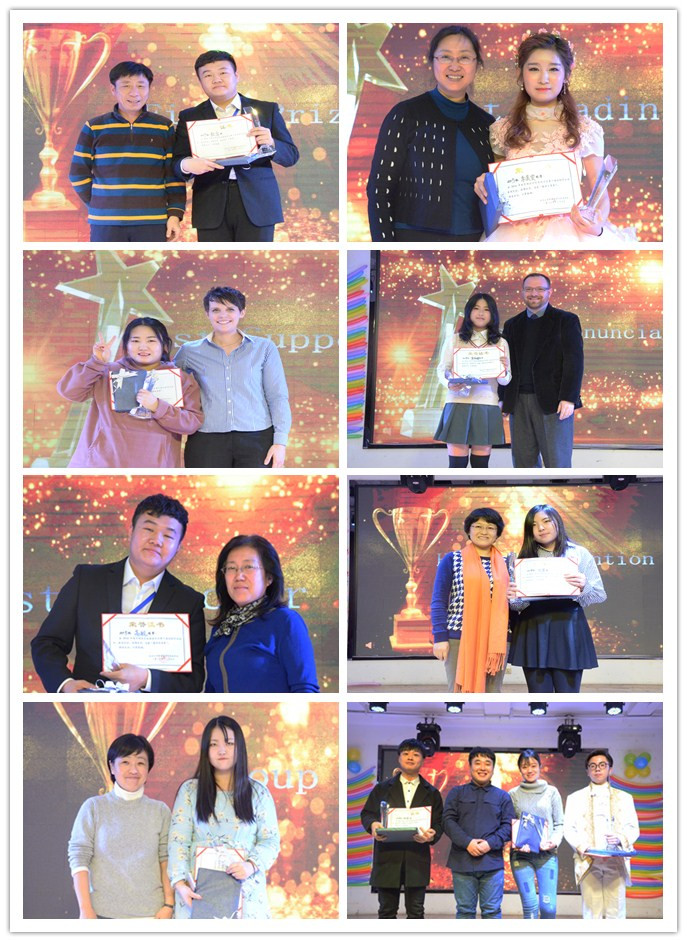 主持人的开场白与选手介绍视频正式拉开了大会的帷幕。参赛的六个班级都赛出了自己的最佳水平。演员们精湛的表演力、引人入胜的剧情、绚丽的舞台与唯美的服装无不感染了在场每一位观众,赢得了观众阵阵掌声与欢呼。经过一番激烈的追逐,2015英语教育班的《窈窕淑女》荣获一等奖、2014英语文学班的《华伦夫人的职业》荣获二等奖、2015英语四语班的《绿野仙踪》荣获三等奖。2014英语四语班《灰姑娘》、2014英语教育班《公主日记》、2015英语文学班《成为简奥斯汀》荣获优秀奖。金丽娜同学荣获最佳语音面貌奖,李钦玲同学荣获最佳配角奖,李美贤同学荣获最佳主角奖,高航同学荣获最佳导演奖。团体奖为各班长达一个月的共同努力做出了充分的肯定,个人奖更是激励了同学们再接再厉,勇往直前。比赛最后由外教Megan 和Sam进行点评与总结。