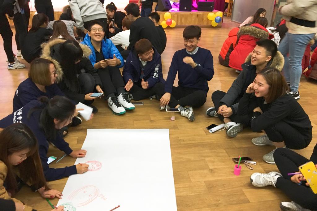 接下来,各员工会成员被随机分成六组,在游戏互动环节前大家利用了四十分钟的时间相互熟悉、沟通感情,每一组都绘制了代表自己队伍的海报,还起了队名、口号。随后的游戏环节共有三个游戏:吸管运输、手足嘴屁股、一反常态。经过三轮游戏,员工干部们增进了彼此之间的感情,更加明白了团结合作的重要性。游戏过后,老师及员工会成员前往二食堂二楼,准备午餐,集体包饺子。在报饺子过程中成员们欢声笑语,其乐融融,更加拉进了彼此的关系。最后,金老师对本次活动做了总结,并提出了几点期许。本次活动在融洽的气氛中圆满结束。