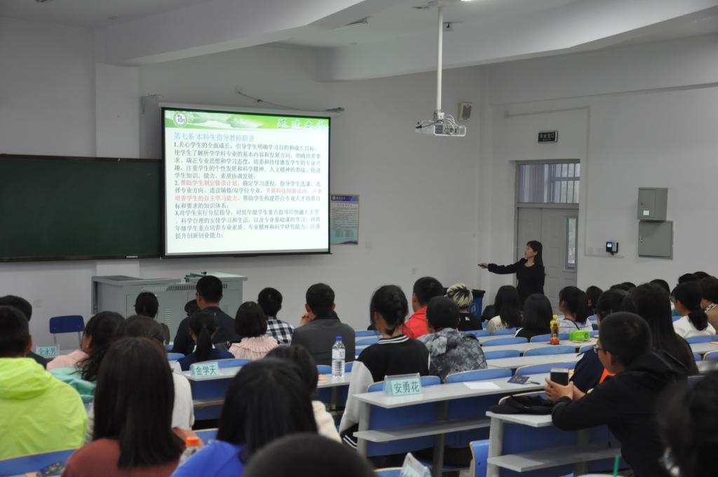 首先,日语专业辅导员郭鲜丹向新生传达学校的各种规章制度及员工行为准则、解释了综合测评办法及奖助学金评选办法、强调了各方面注意事项,新生在入学后遇到的种种问题进行解答。