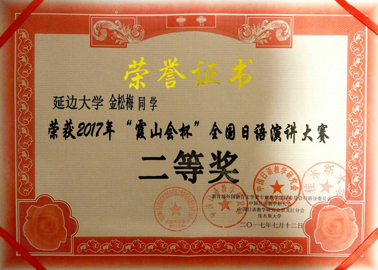 w88优德日语专业员工在2017年“霞山会” 杯全国日语演讲大赛中荣获二等奖