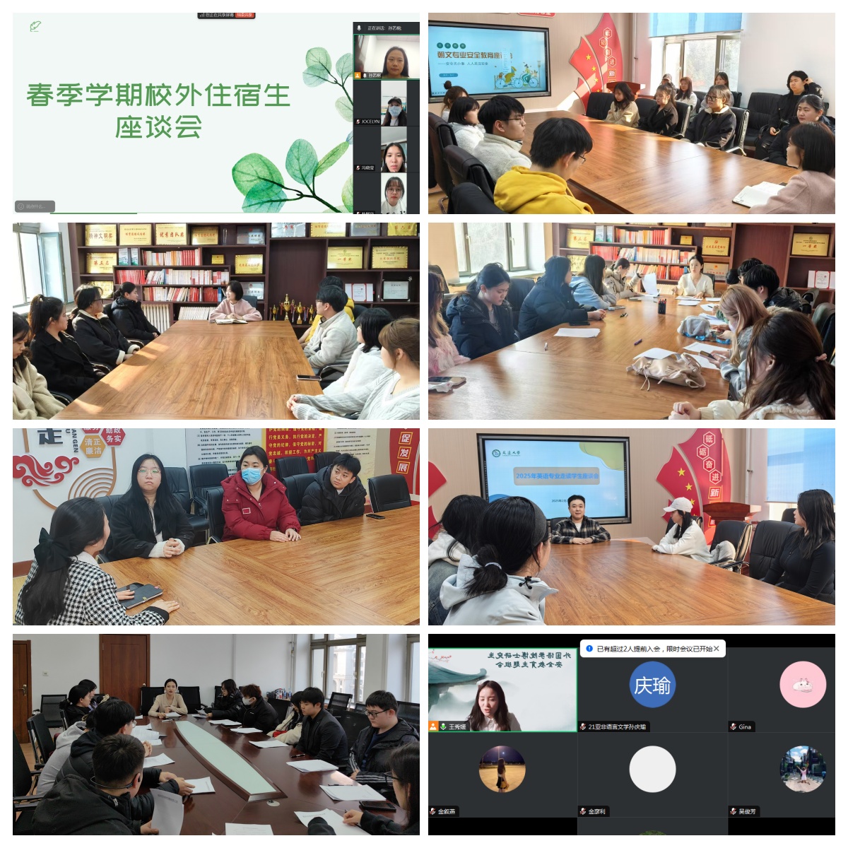 随后,各专业辅导员带领本专业外宿员工开展了专题座谈会。会议采取“交流+引导”双轨模式有序开展。在首轮发言环节,同学们结合寒假社会实践、语言考级备考、跨文化研学、考研就业等经历,分享了“提升专业实践能力”“优化时间管理”等新学期的个性化成长规划。在聚焦“校外租房利弊”的专题讨论中,与会师生围绕居住安全、学习效率、人际交往等维度展开深度剖析,既有同学坦言“独立空间提升了自主学习专注度”,也有同学反思“通勤耗时导致课堂出勤率波动”。最后,辅导员进行了详细的安全知识讲解,涵盖了正确使用电器设备、增强日常安全防范意识以及应对紧急情况的方法等内容。同时强调了校外住宿员工应与所在班级同学、专业老师保持密切联系,定期汇报自己的学习、工作和生活情况,如遇困难,及时向学院反映。辅导员还现场展示了上半学期走读生的成绩变化曲线,针对部分租房后绩点明显下滑的员工建立专项辅导档案。